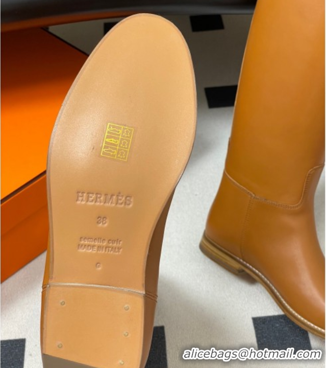 Pretty Style Hermes Jumping Boots in Calfskin with Kelly Strap Brown 2025 H082001 0820007