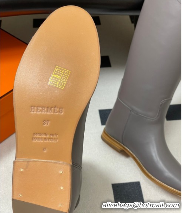 Sumptuous Hermes Jumping Boots in Calfskin with Kelly Strap Grey 2025 H082001 0820008
