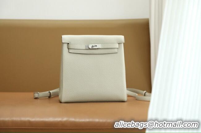 Pretty Style Hermes Kelly Ado Backpack 22cm in Taurillon Clemence Leather H2111 Beton White/Silver 2026 (Full Handmade)