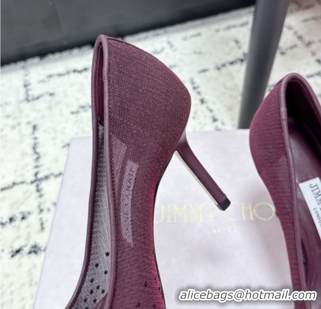 Pretty Style Jimmy Choo Love Pumps 8.5cm in Mesh and Strass Deep Merlot Red +1210103