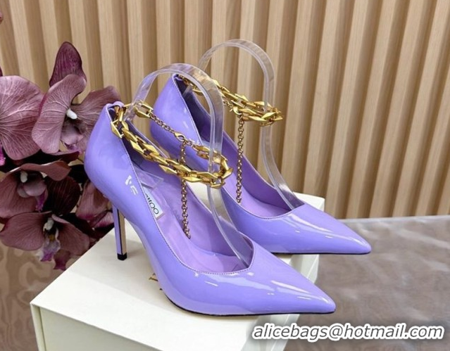 Good Quality Jimmy Choo Patent Leather Heel Sandals 10cm with Chain Strap JC020702 Purple 2026