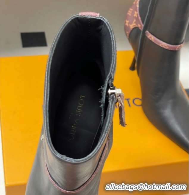 Good Quality Louis Vuitton 6AM Heel Ankle Boots 9.5cm in Monogram Canvas and Leather with Back Strap Black 1AIUOR 1021148