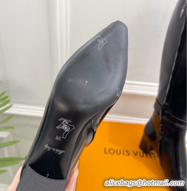 Shop Duplicate Louis Vuitton Heel High Boots 5cm in Patent Leather with Buckle Strap Black LV102201 1022004