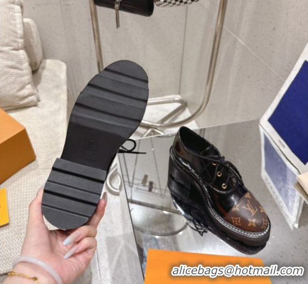 Most Popular Louis Vuitton Monogram Canvas and Patent Leather Laced-up Shoes Black LV102204 1022038