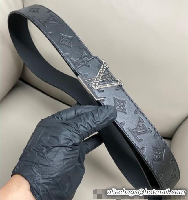 Pretty Style Louis Vuitton Men's Maxi Monogram Leather Belt 4cm with Silver LV Buckle LV011004 Black 2025