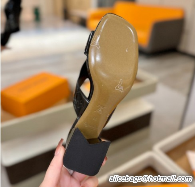 Popular Style Louis Vuitton Patent Leather Heel Slides Sandal 5.5cm Black 2026 LV030301