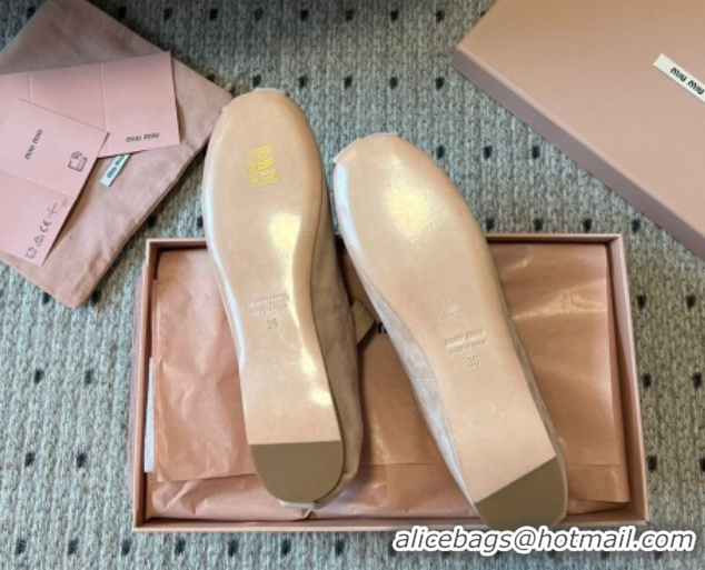 Pretty Style Miu Miu Suede Ballerinas Flat with Bow and Elastic Band Pink 5F794D 1025039 2025