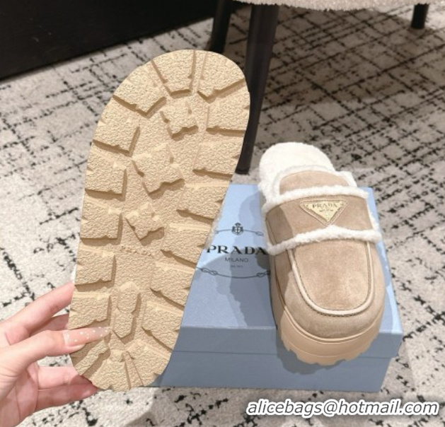 > Shoes Plaza > Prada Shoes > Purchase Prada Suede and Shearling Platform Mules 4cm Taupe 2025 1XZ778 1027014