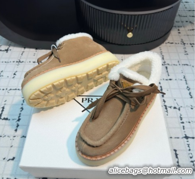 Grade Quality Prada Suede and Wool Platform Chukka Ankle Boots 5cm Brown2 2025 1T716N 1027089