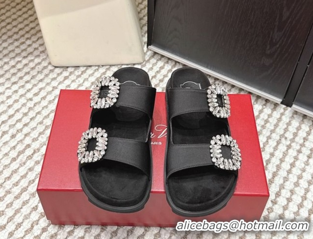 Best Product Roger Vivier Slidy Viv' Strass Buckle Flat Slides Sandal 0225043 Black 2026