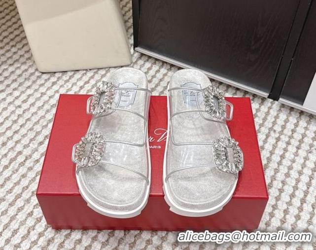 Stylish Roger Vivier Slidy Viv' Strass Buckle Flat Slides Sandal Clear 0225048 2026