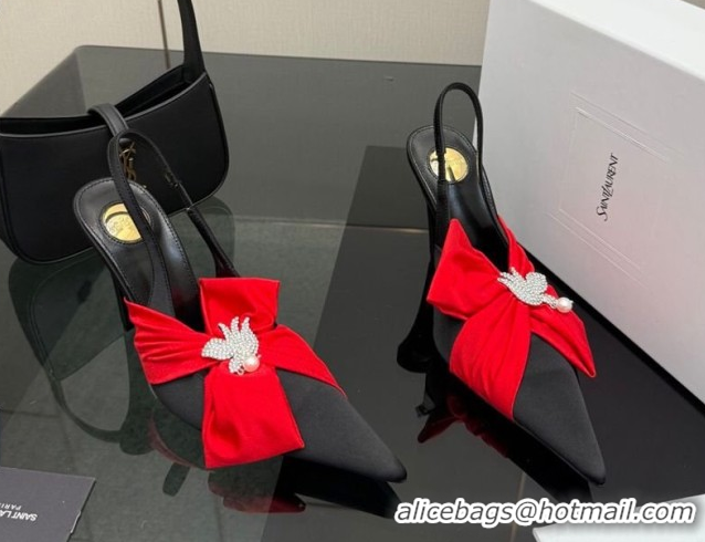 Low Cost Saint Laurent Dove Slingback Pumps 10.5cm in Satin with Bow Black/Red 2026 SL022404