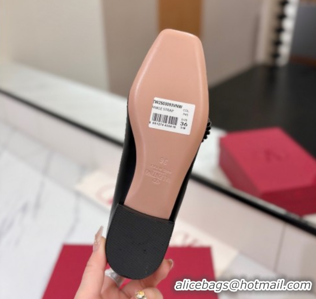 Pretty Style Valentino Preshoes Mary-Jane Ballerinas Flat with Jeweled Button in Nappa Leather Black 0821011