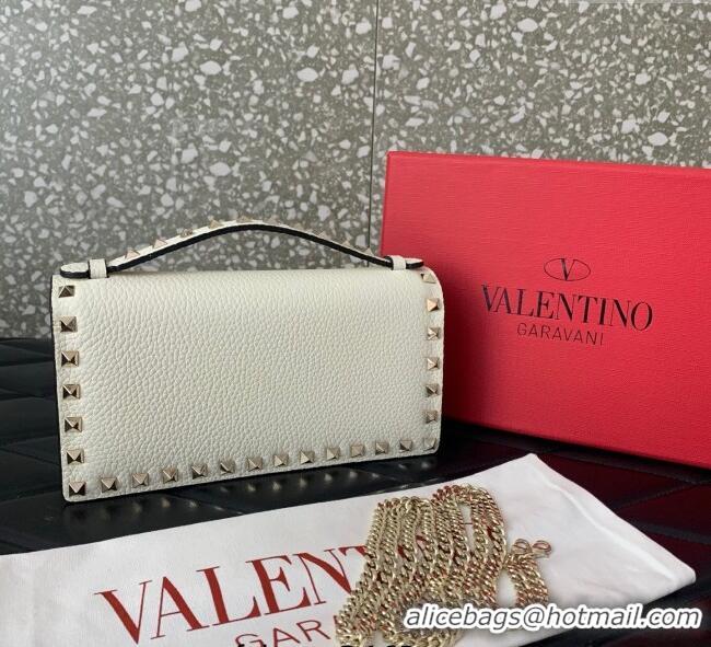 Pretty Style Valentino Rockstud Wallet with Chain in Grainy Calfskin VLTN098 White 2025