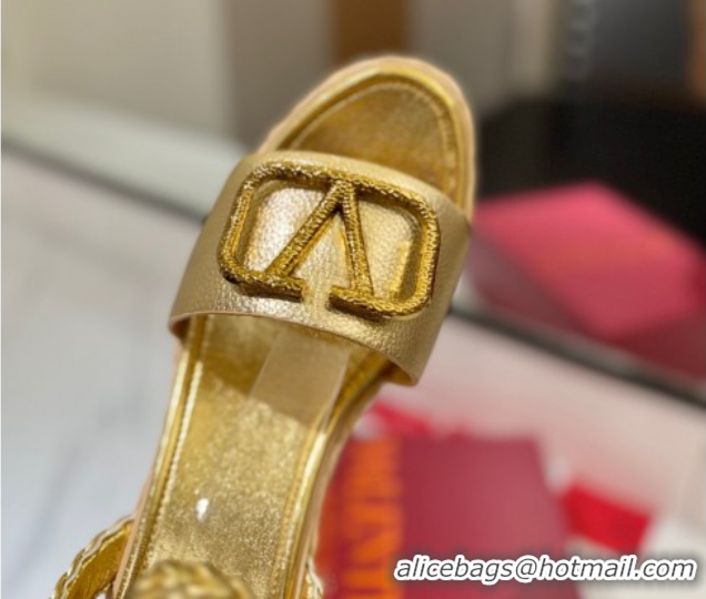 Grade Quality Valentino VLogo Grainy Calfskin Wedge Sandals 9cm Gold-Tone 2025 VA082113 821124
