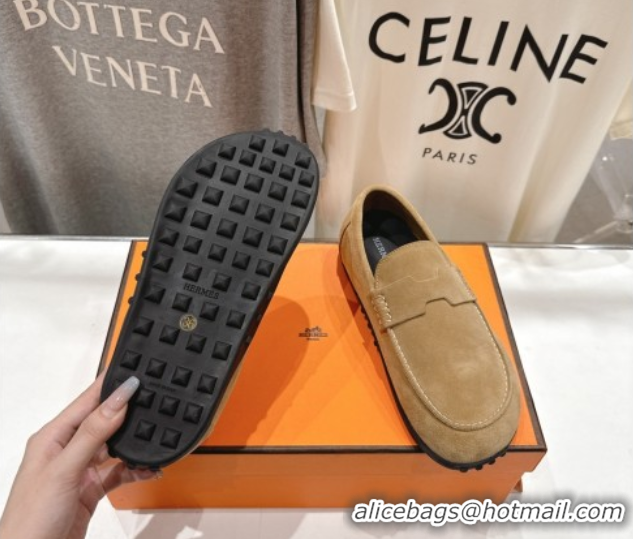 Promotion Hermes Lazy Loafers in Suede H090802 Brown