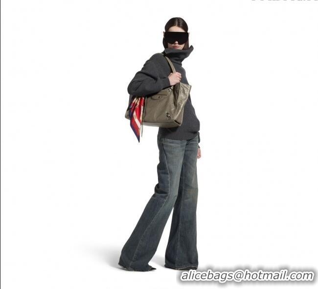 Big Discount Balenciaga Le City Tote Bag Medium in Arena Storico Lambskin 1029 Army Green 2025