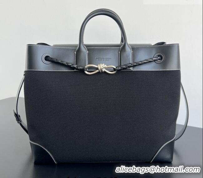 Original Cheap Bottega Veneta Mens Andiamo Voyager Tote Bag in Canvas and Leather 827066 Black 2026