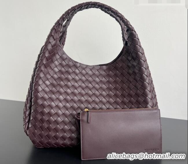 New Cheap Bottega Veneta Large Campana Shoulder Bag in Intrecciato Leather 844250 Dark Barolo Red 2025
