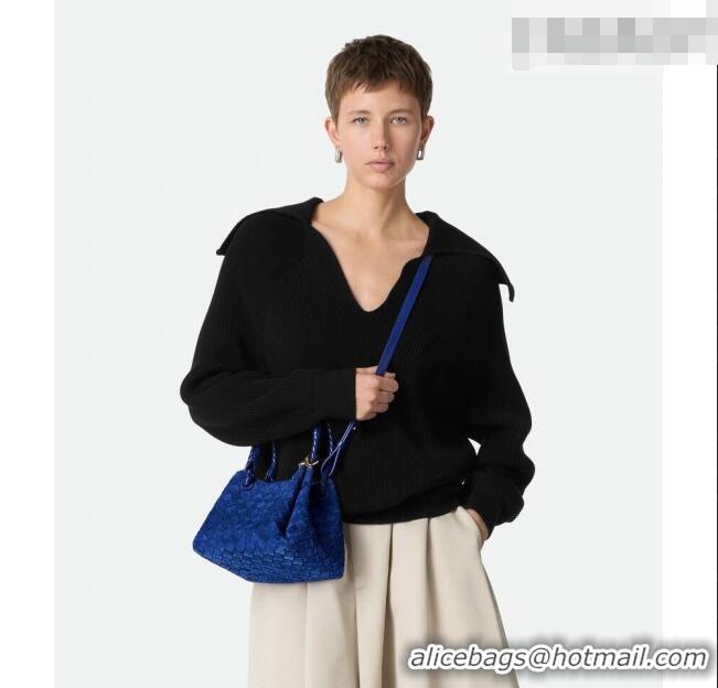Promotional Bottega Veneta Small Parachute Shoulder Bag in Intrecciato Suede 796569 Royal Blue 2025