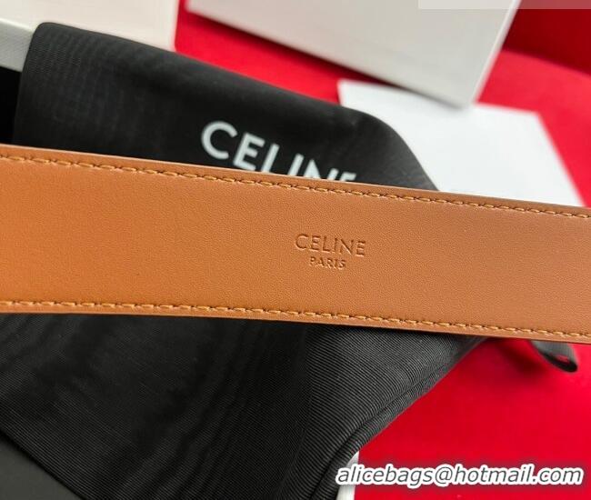 Good Taste Celine Calfskin Leather Belt 3cm with Triomphe Logo Buckle CE011003 Brown/Gold 2025