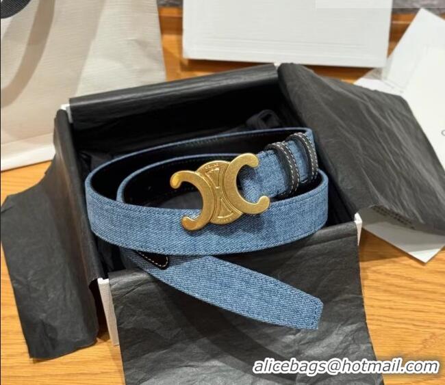 Promotional Celine Denim and Leather Belt 2.5cm with Triomphe Buckle CE0911099 Blue/Black/Gold 2025