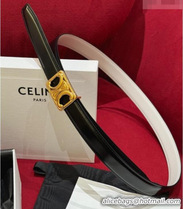 New Design Celine Medium Taurillon Leather Belt 2.5cm with Framed Triomphe Buckle CE011005 Black/White/Gold 2025