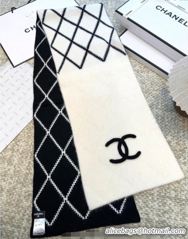 New Cheap Chanel Cashmere Wool Silk Long Scarf 30x180cm CH111158 White 2025