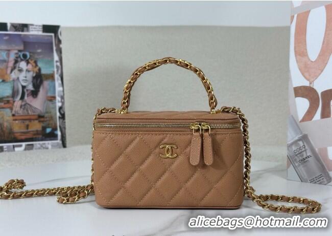 Promotional Chanel Grained Shiny Calfskin Long Vanity Case with Chain and Top Handle A96161 Brown 2025