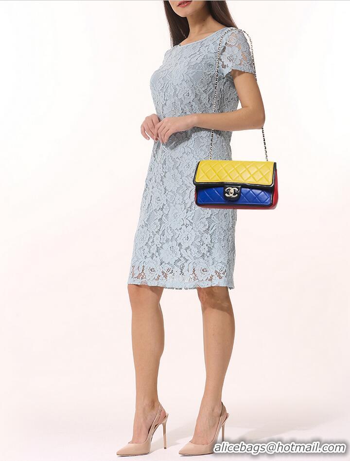 Promotional Chanel Primary Tri-Color Quilted Leather Flap Bag A11112 Multicolor