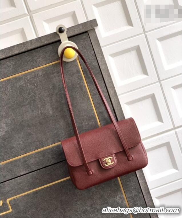 Promotional Chanel Small Flap Bag in Burgundy Grained Shiny Calfskin AS6130 Spring-Summer 2026 Pre-collection