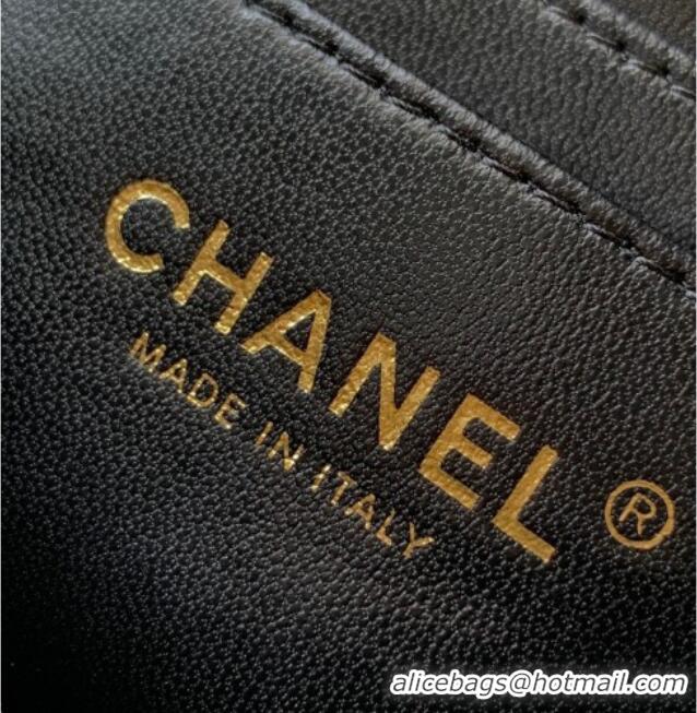 Good Quality Chanel Grained Calfskin Zipped Phone Holder with Chain and Strass CH101102 Black 2025