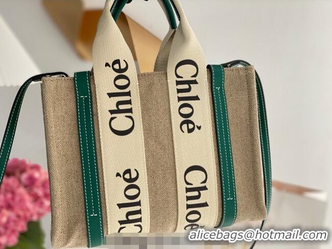 Affordable Price Chloe Small Woody Tote Bag in Linen Canvas and Calfskin Leather 1120 Dark Green 2025