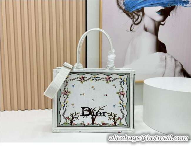 Best Price Dior Dioramour Medium Dior Book Tote with Strap D2206 White Multicolor Revolution Flowers Embroidery 2026