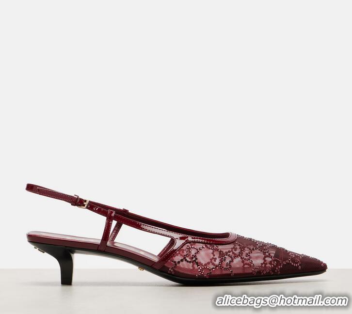 Promotional Discount Gucci GG Demi Embellished Mesh Slingback Pumps 674668 Red