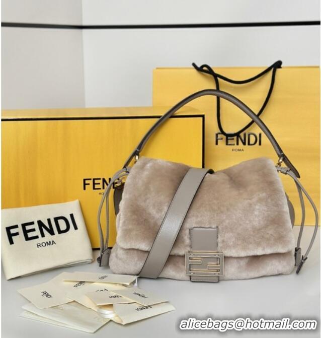 Best Price Fendi Mamma Baguette Medium Bag in Shearling 8693L Grey 2025 Top