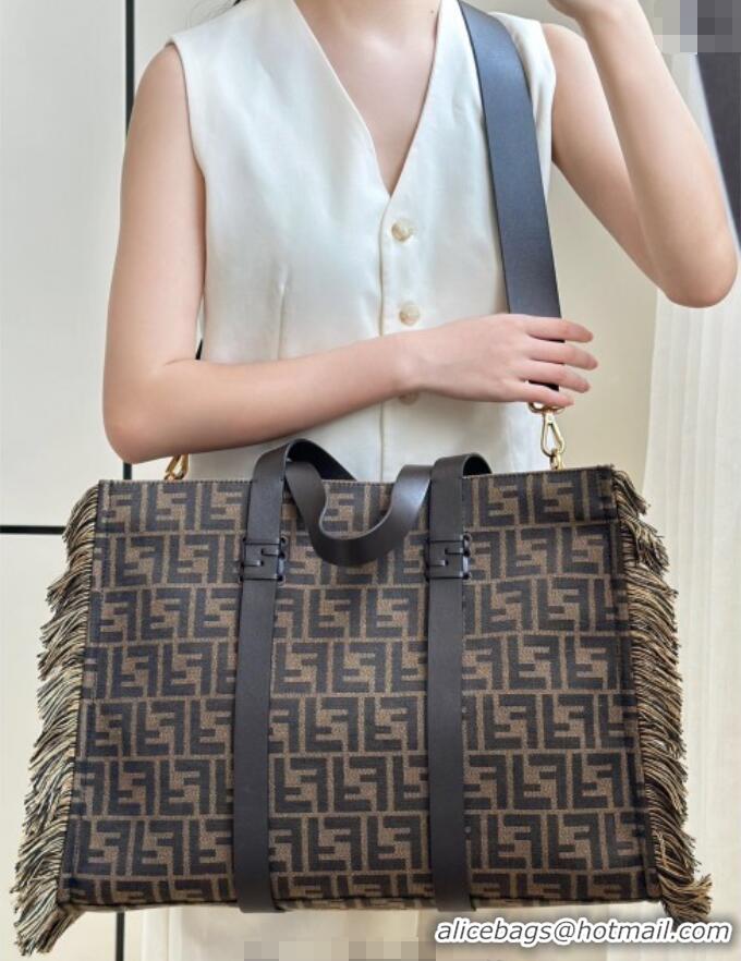 Well Crafted Fendi Summer Tote Bag in Brown FF Jacquard Fabric with Fringes 8683 Brown 2025