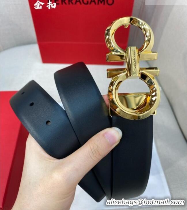 Popular Style Ferragamo Belt 3.5cm in Reversible Soft Smooth Leather 0615 Black/Shiny Gold