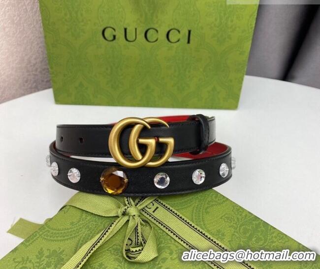 Promotional Gucci Calfskin Leather Belt 2cm with GG Buckle with Strass Stone GG102107 Black 2024