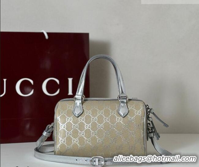 Pretty Style Gucci GG Emblem Canvas Small Boston Bag 848889 Silver 2026