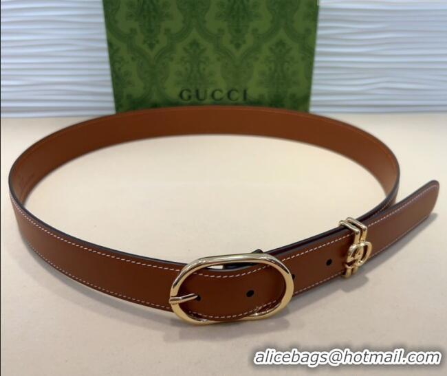 Promotional Gucci Double G Leather Belt 3cm with Round Pin Buckle 633125 Brown/Gold 2025