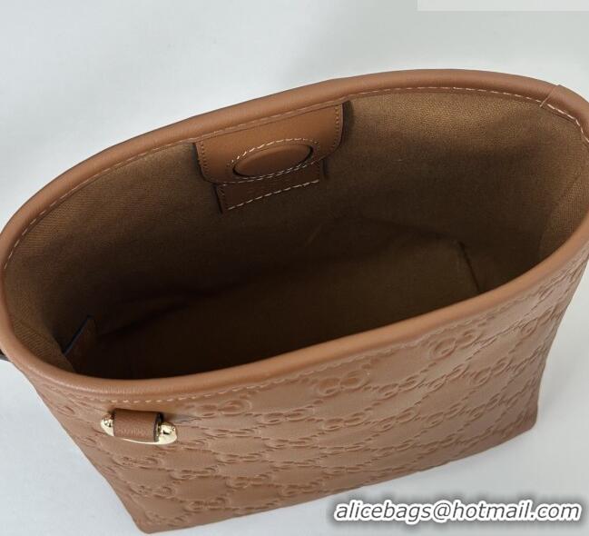Big Discount Gucci GG Leather Emblem Nano Bucket Bag 847090 Brown 2025