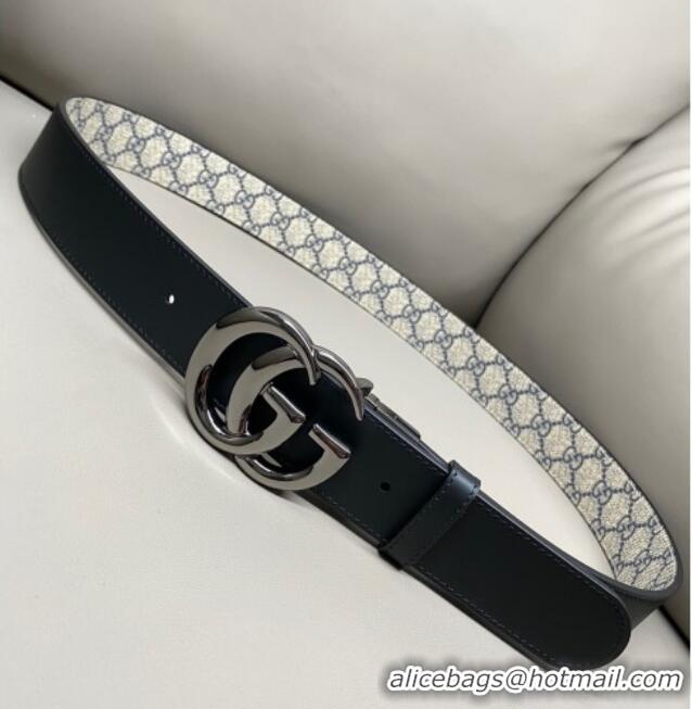 Your Position: Home > Belts Mall > Gucci Belts > Best Quality Gucci GG Canvas and Leather Reversible Belt 3.7cm with Gunmetal GG Buckle GG010903 Blue/Beige/Black 2025