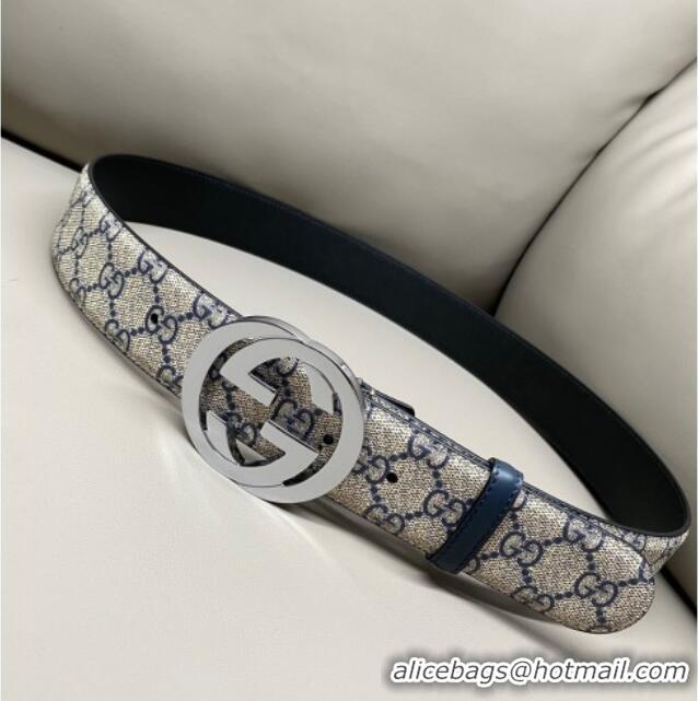 Promotional Gucci GG Supreme Canvas Belt 4cm with Interlocking G Buckle GG011002 Beige/Blue Silver 2025