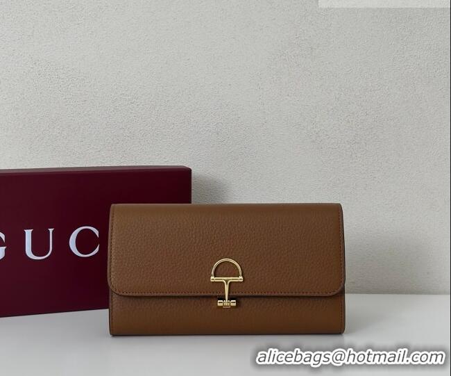 Best Quality Gucci Softbit Leather Continental Wallet with Half Horsebit 828147 Brown 2026