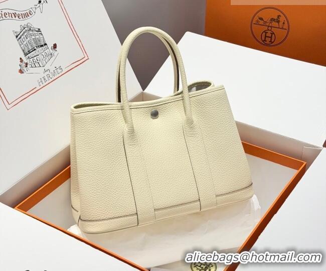 Promotional Hermes Garden Party Bag 30cm in Grained Leather 31001 Cream White 2026 (Half Handmade)