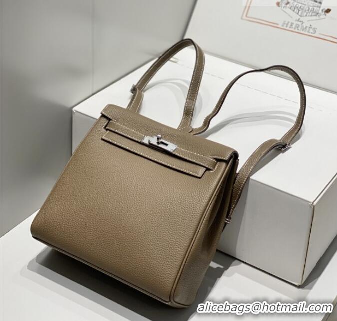 Inexpensive Hermes Kelly Ado Backpack 22cm in Togo Leather H2101 Etoupe/Silver 2026 (Half Handmade)