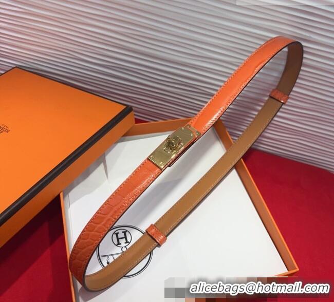 Promotional Hermes Kelly Duo Belt 1.8cm in Crocodile Embossed Calfskin with Metal-Tone Buckle H2011025 Orange/Gold 2025