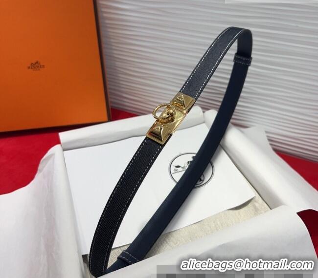 Promotional Hermes Rivale Denim Belt 1.8cm with Two Medor and Ring Buckle 8190 Dark Blue/Gold 2025