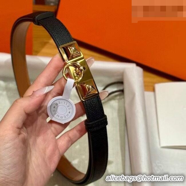 Famous Brand Hermes Women's Rivale Belt 1.8cm with Two Medor Studs and Ring Buckle H5022 Black/Gold 2025